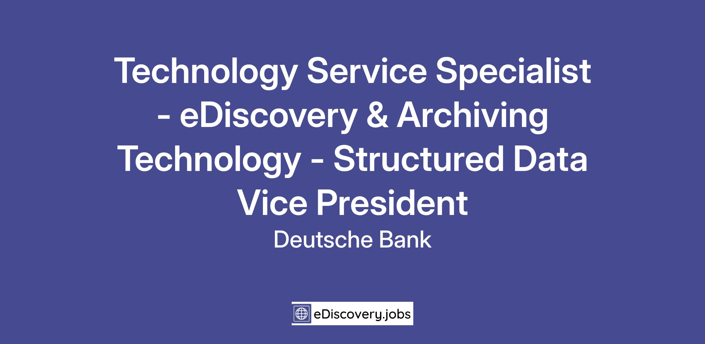 Deutsche Bank is seeking an individual to join the eDiscovery Services team. The team is responsible for the Bank’s data retrieval, retention, and transfer of electronically stored information to internal requestors and external third parties to meet legal, compliance and regulatory requirements.