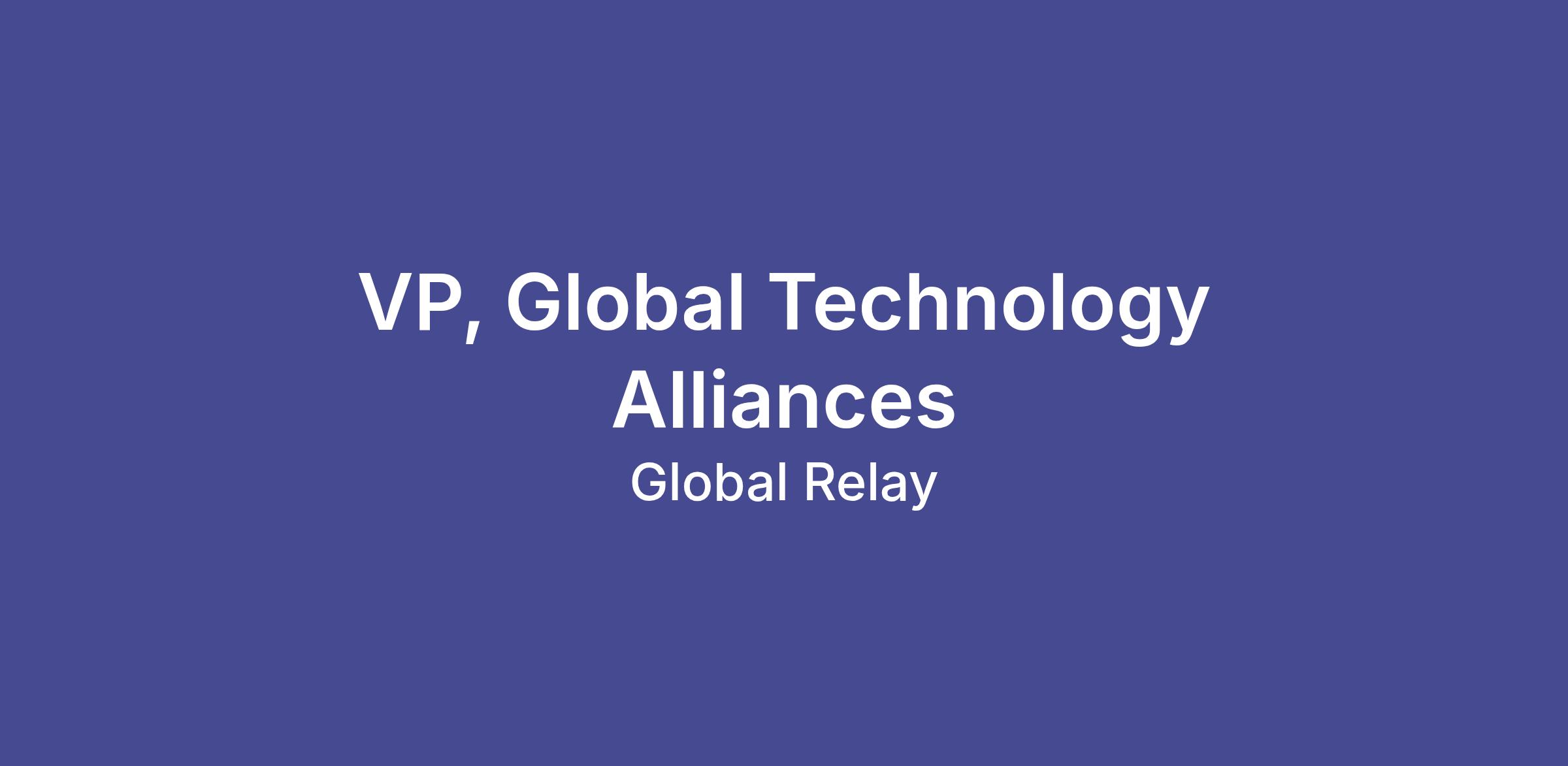 As VP, Global Technology Alliances, you will own, design, and expand Global Relay’s global partner ecosystem, including technology alliances and channel sales, with companies such as Meta, Verizon, Bell, Nvidia, Twilio, HPE, and others, as well as resellers and other channel partners.